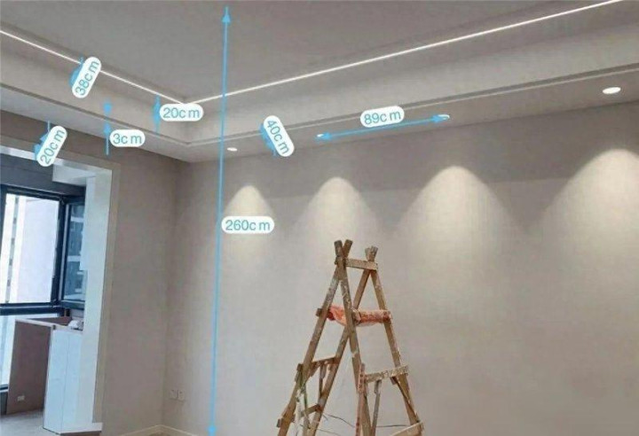 先说尺寸——别听师傅说“宽点大气”,双眼皮的宽度30-35厘米刚好,就像给天花板“画眼线”,太宽像“肿眼泡”,太窄没层次感;下吊高度15-25厘米,太高了压得慌(尤其小户型),太矮了像“贴了层纸”,没立体度。我邻居家下吊做了30厘米,现在客厅显小一圈,天天吐槽“像住山洞”。