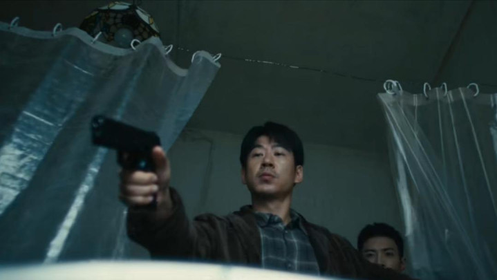 毒虫因为嗑药过多产生幻觉,见人就杀,即将坠楼的时刻遭到了刑警队长韩烽的阻止,产生幻觉准备跳楼自杀的毒虫在看到韩烽手中电筒的灯光后,追寻着光源慢慢的走下了台阶。可在关键时刻,韩烽的手电却没电了,失去光源的毒虫立刻又兽性大发,往天楼的边缘跑去。