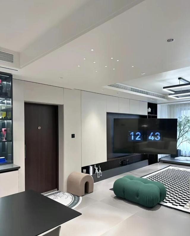 满墙电视柜整得干干净净,杂物全隐身了,这种设计才叫过日子人的智慧。